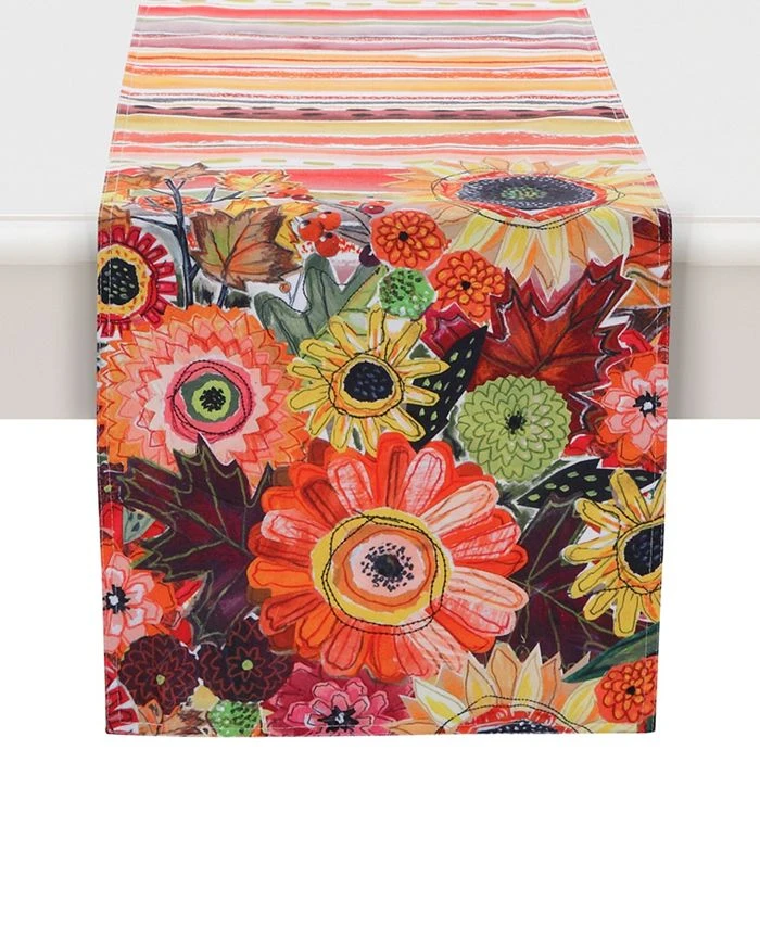 The watercolor collage design of the “Harvest Snippets” reversible runner is sure to bring autumn cheer to your kitchen. This design features autumn foliage, flowers, and stripes in cheery colors of red, green, and yellow. You’ll love the boho vibes this reversible runner brings to your table.