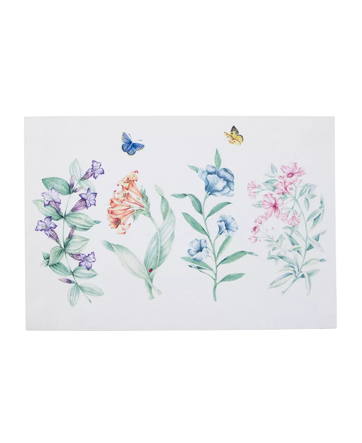 Lively butterflies buzz about a variety of vibrant flowers on this new Butterfly Meadow Garden Placemat.