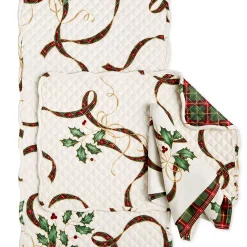 Grace your table settings with the Lenox Holiday Nouveau napkins, featuring a traditional ribbon and holly motif at the front and a festive plaid pattern at the reverse.
