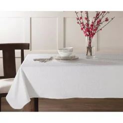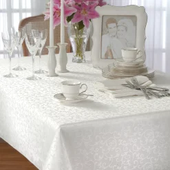 An evening of at-home fine dining is yours with Lenox’s Opal Innocence tablecloth. The pattern’s trademark white-on-white vine motif shimmers via contrasting luster. A corded rib on the edges of the tablecloth lends interest.