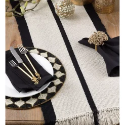 Inspired by traditional heavy rugs, this beautiful table runner brings rustic charm to your table. The woven pattern ends in thick fringes that complement its style. The heavy rug table runner makes a unique addition to your dining.