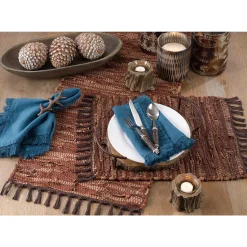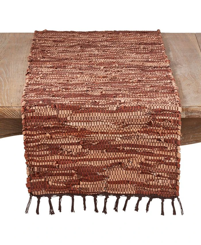 Have you ever seen a table runner that’s an eye-catching conversation piece Well, you have now. This oblong-shaped table runner features a multi-colored leather design, along with tasseled edges that help make this masterpiece what is it.