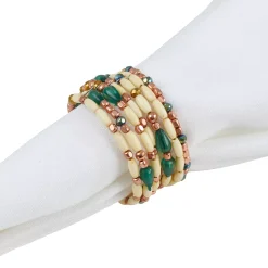 If you are looking to accentuate your table decor without going overboard, look no further than this pretty set of beaded napkin rings. You can use them with a wide array of tableware and decor in a range of colors.