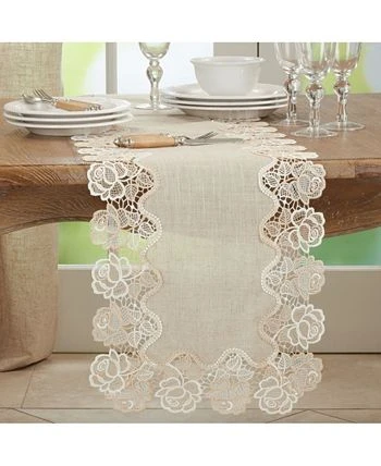 Bring an old world charm to your decor with this delicate and refined lace Rose border table runner. The graceful lace work and linen blend construction come together beautifully to create a balanced design. It makes a unique and wonderful statement piece that’s sure to catch the eye.