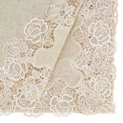 Subtle and exquisite this beautiful, unique lace rose border tablecloth will completely transform your home decor. A wonderful accent piece that brings reminiscences of an old world, this linen blend tablecloth is a great way to cover old tables and give them a stylized look.