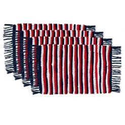 Perfect for 4th of July celebration, Labor Day barbecues, but so many other occasions as well, these striped patriotic chindi placemats will come in handy over and over again. They’re highly versatile and easy to pair. The chindi construction adds beautiful texture.