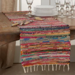 With an explosion of colors and woven design, the multi-colored chindi table runner brings texture and brightness to your tabletop. It’s great for various occasions and pairs easily with multiple color palettes. For a complete look, use with matching placemats.