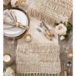 This lovely long table runner will be your go-to piece for every dinner you host. Pair the Sequin Moroccan Cotton Runner with same tones and colors for a natural, blended look or use dark colored placemats and napkins for a contrasting decor.