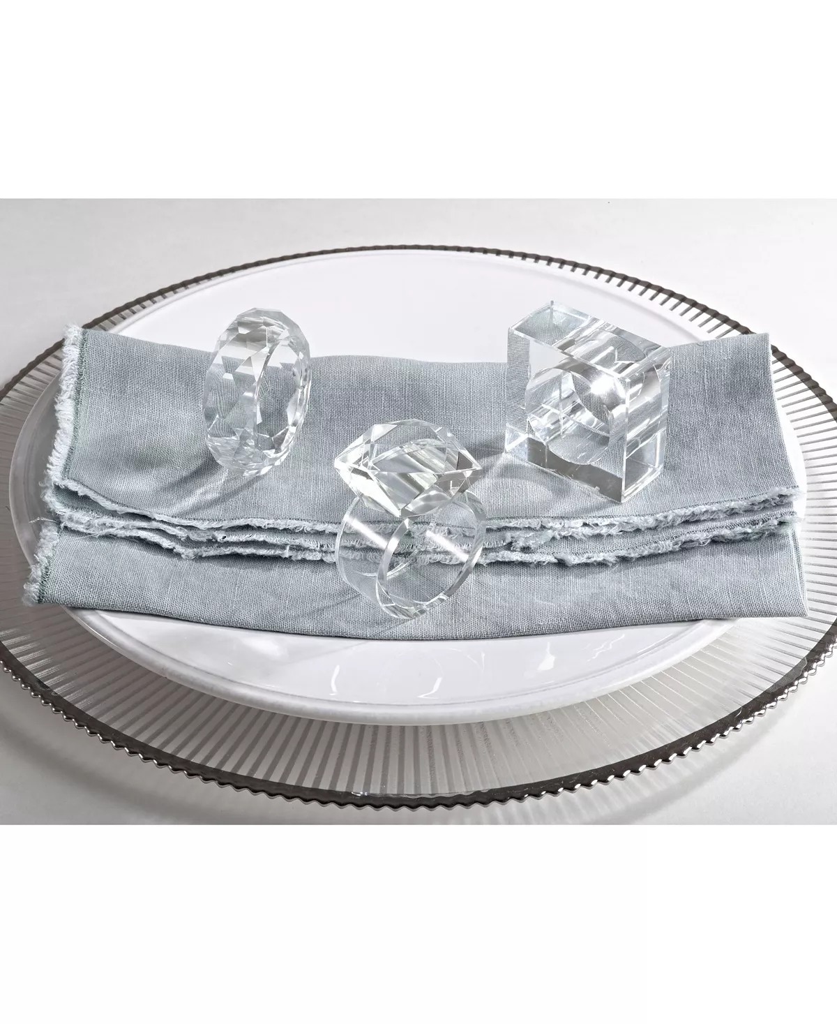 These lovely crystal napkin rings give an elevated look to your tabletop. Easy to dress up with elegant cotton napkins or pare down with linen table napkins, these highly versatile napkin ring holders will quickly become your go to piece.