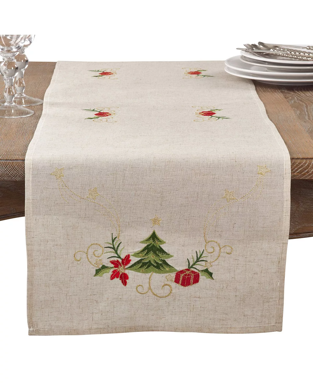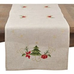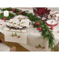 Bring a dash of whimsical festive charm to your holiday table with this adorable embroidered Christmas table runner. The small, delicate embroidery leaves you plenty of room to play with colors and patterns. It’s a great piece for the entire winter season.