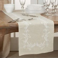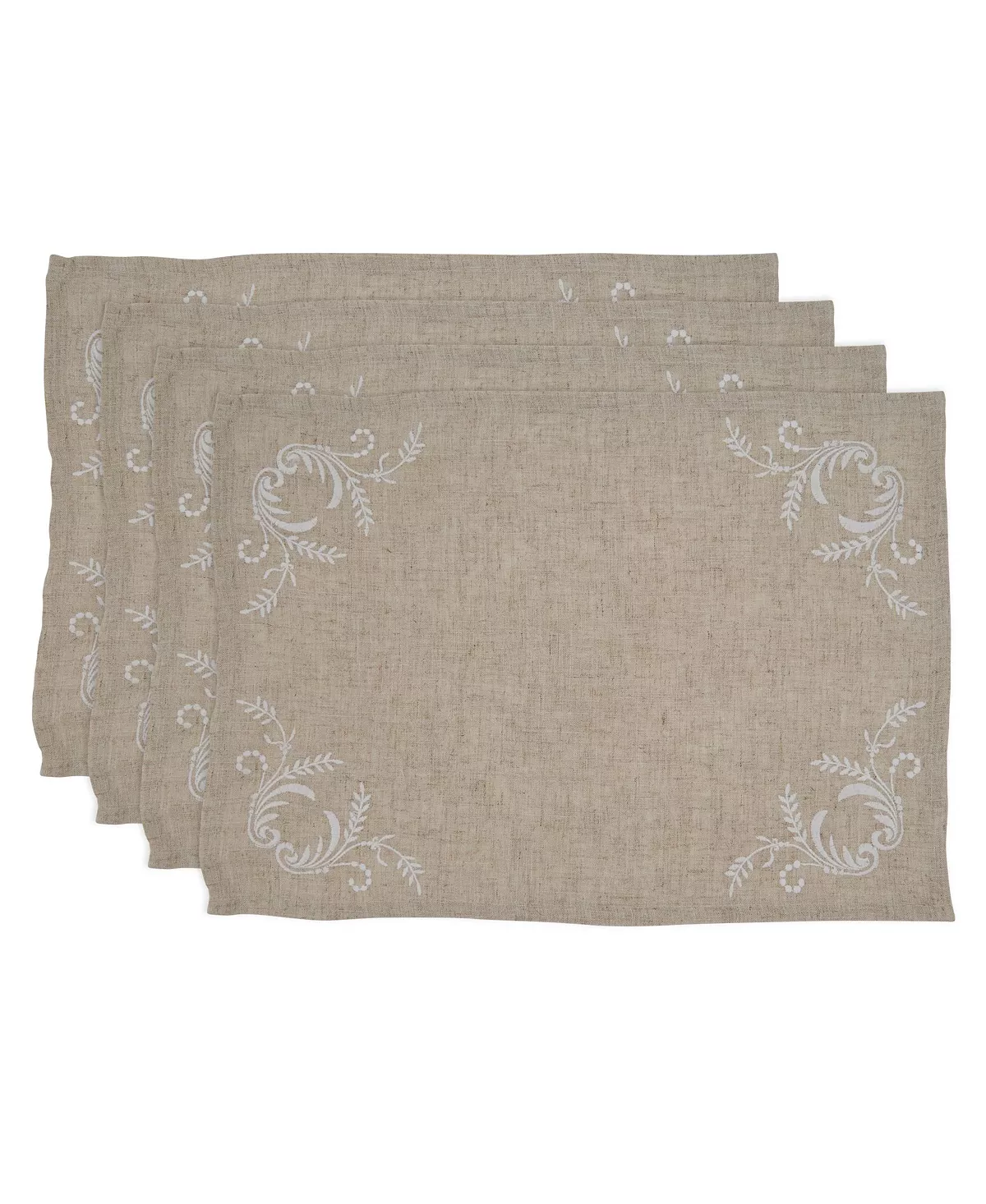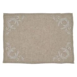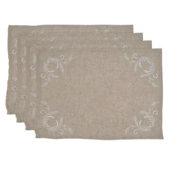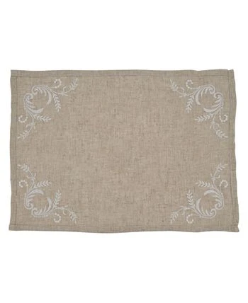 For stately dinners and special occasions, this gorgeous set of embroidered design placemats makes it easy to set a stylish, graceful table. It features beautifully ornate embroidery in the corners, and a linen blend that lends its naturalness. Pair with matching runner for a complete look.