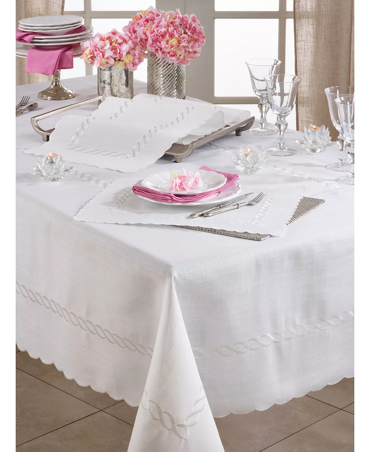The Braided Embroidery Table Runner is extremely versatile and allows for many beautiful pairings. You can coordinate with brighter colors for a lively contrast or keep within the muted, neutral tones for soothing vibes. It goes wonderfully with white and green flowers on the table.
