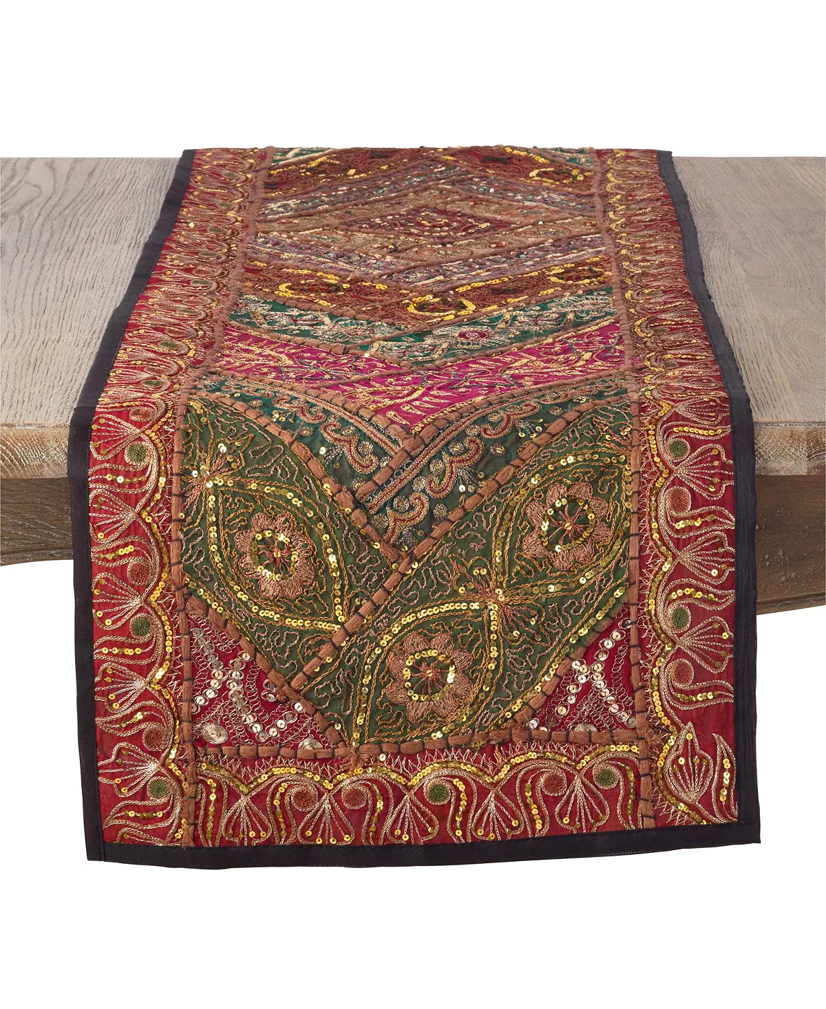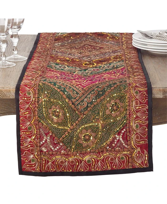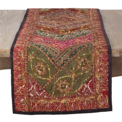 Inspired by traditional Indian handwork, this unique handmade sari “sitara” table runner will make a wonderful addition to your tablescape. It features an intricately embroidered design, which makes it perfect to use on its own, as well as backdrop for your table settings.