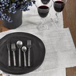 Dazzle guests with this shimmering ribbed table runner. Woven with cotton, the runner adds a hint of shimmer to your tablescape and layers beautifully with printed napkins and placemats, chic flatware and festive tabletop decor.