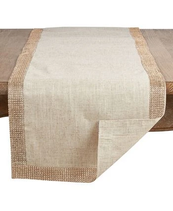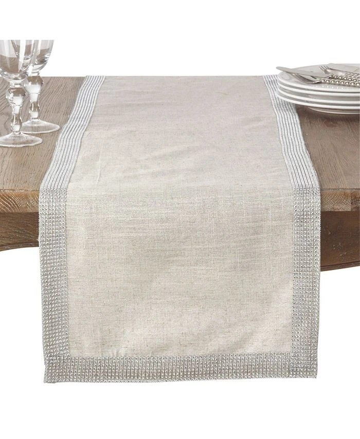 This natural, linen-blend runner from saro lifestyle is surrounded by shimmering embellishments for shabby chic sophistication.