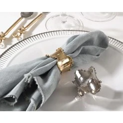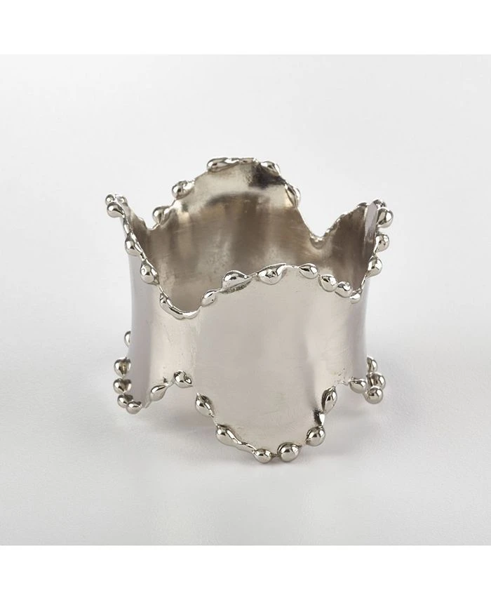 The classic design napkin rings With wavy cut edge bring a contemporary twist to a classic design. The small studs around the rings edge add texture and dimension to the setting. Pair with plain, light toned table napkins and placemats.