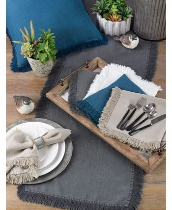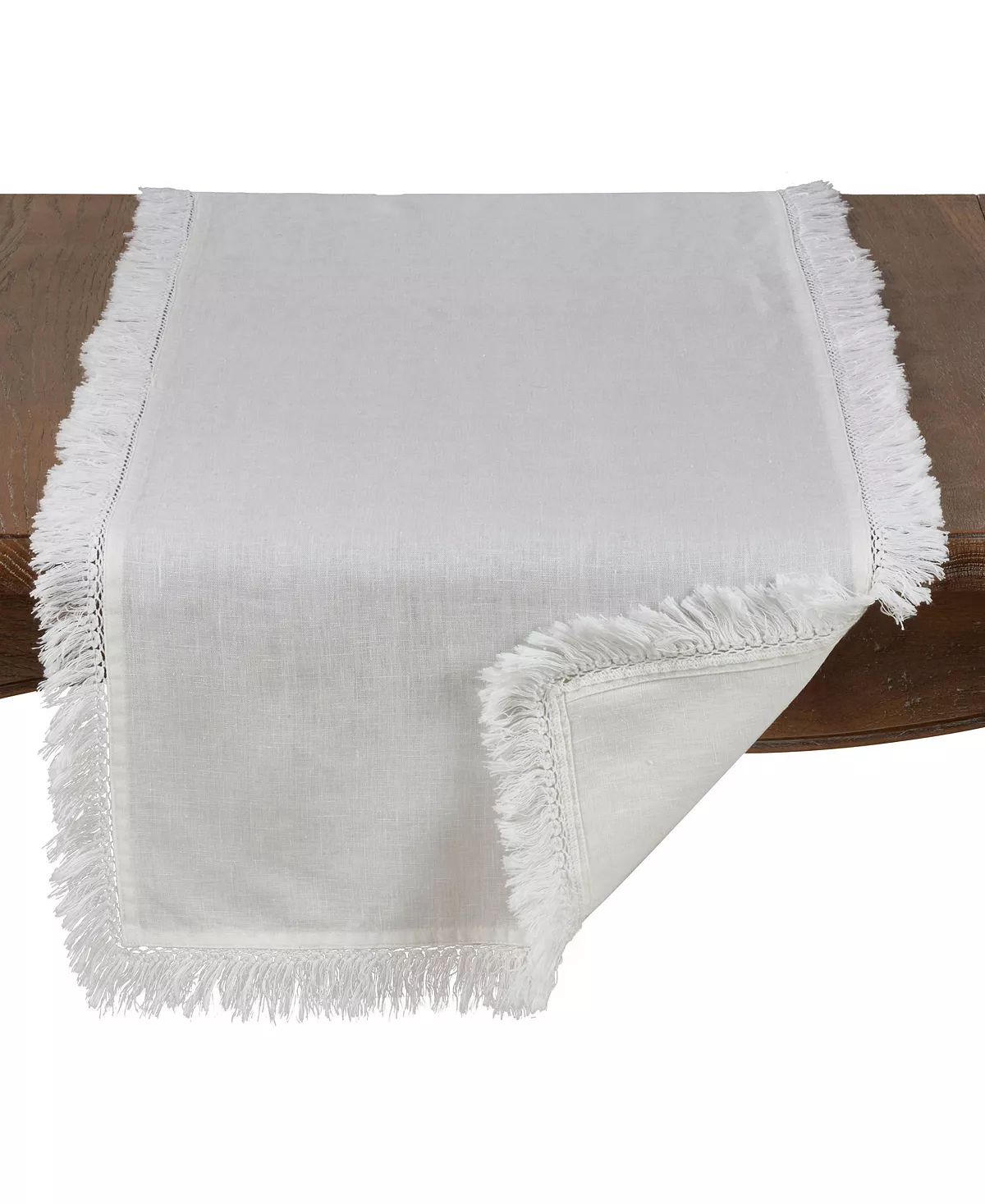 - This stone-washed, fringe-designed linen table runner comes in a warm, rich neutral color assortment and easily coordinates with your existing decor