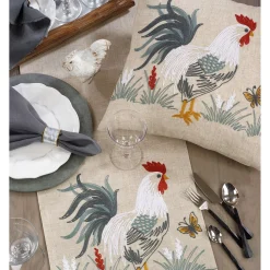 Bring natural style to your table decor with this charming, countryside-inspired runner. The Embroidered Rooster Table Runner is easy to pair due to its neutral tones and linen texture and makes a great background for your dishes and centerpieces.