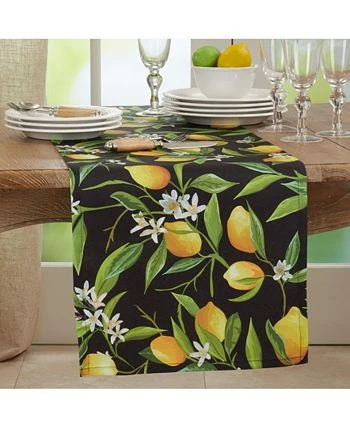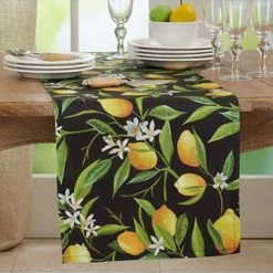 Add a fresh note to your tabletop with this lovely lemon design outdoor table runner. The beautiful runner features vivid green and yellow tones on a black background which makes the design pop even more. It’s easy to pair with solid placemats and table napkins within the same color palette.