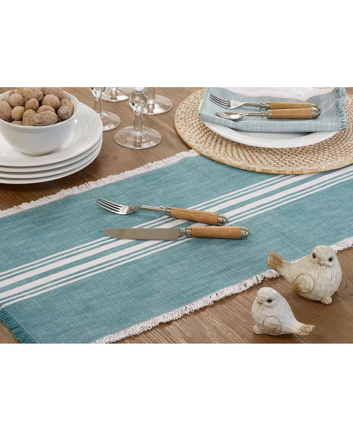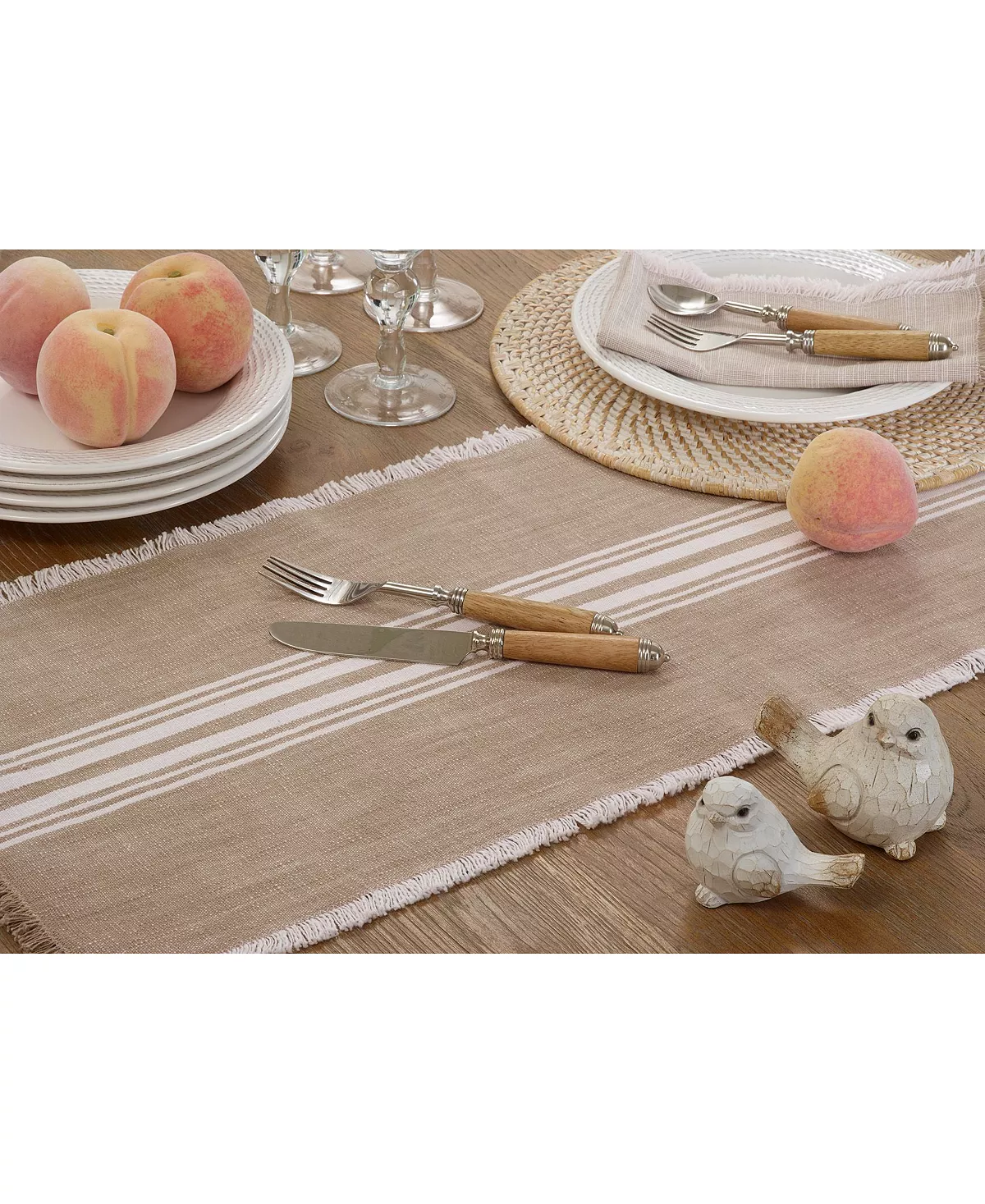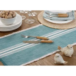 The striped fringe table runner is the perfect backdrop for everyday meals and casual entertaining. It’s made with cotton, which brings a natural look to the table and features a fringed design that adds a homey feel. It’s easy to pair with placemats or chargers within the same color palette.