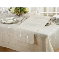 Aside from the material of an item, the design within really makes it what it is. That’s the case with this dainty-looking embroidered table runner. Made from a poly-linen blend, this oblong-shaped table runner features a unique check design, which gives it a lot of character.