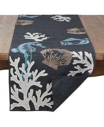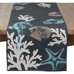 If unique table decor it’s what you’re after, then you can’t miss the mark with this beautiful sea design table runner. Printed on a dark toned background, the design features sea life accents that instantly calm and relax the mind.