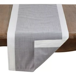 The banded border table runner helps you set the perfect backdrop for a charming tabletop. The light and dark contrast creates a beautiful effect and adds depth and dimension to your dining decor. Pair with matching table napkins and solid color dinnerware for a coordinated look.