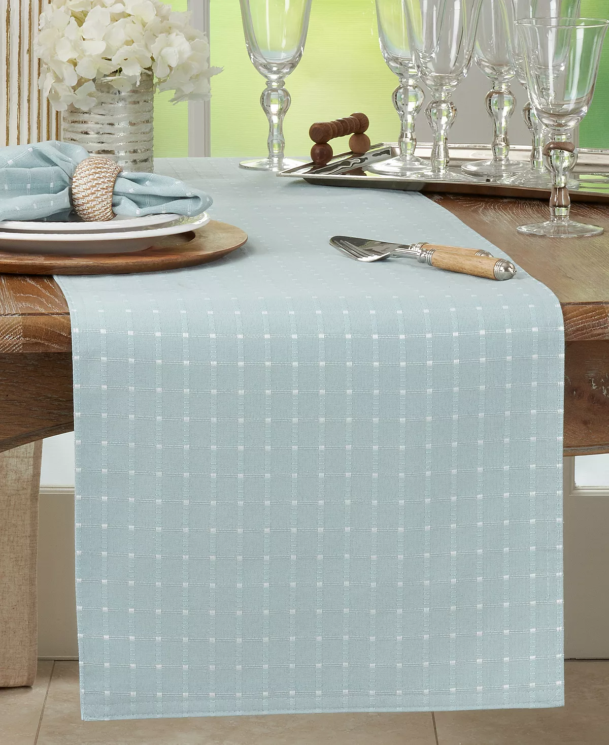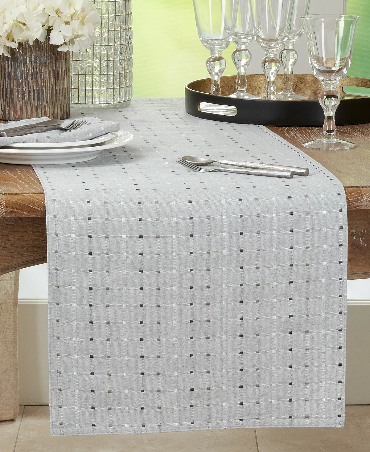 Clean and classic with a touch of texture, the stitched squares of this table runner make it ideal for anytime, any occasion.
